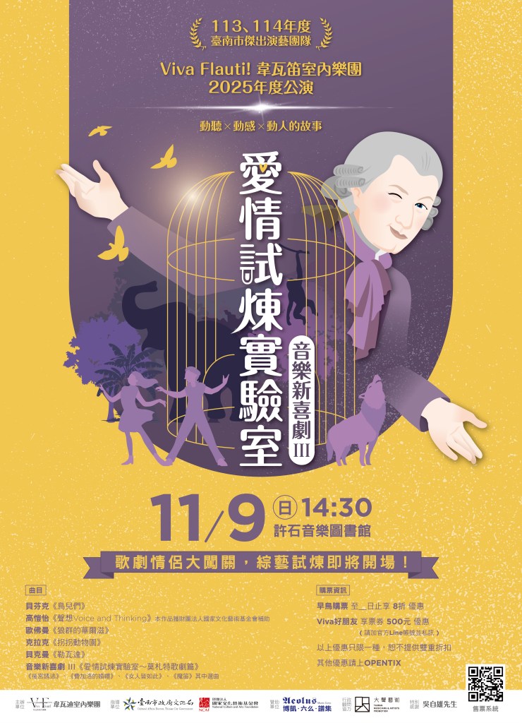 《韋瓦笛室內樂團》由年輕長笛家組成,專注於演奏各種長笛家族樂器,跨足巴洛克到流行音樂,不受時間地點限制。以豐富音樂才華和熱情,將美妙音樂傳遞給觀眾,深深感動每個人的心靈。
